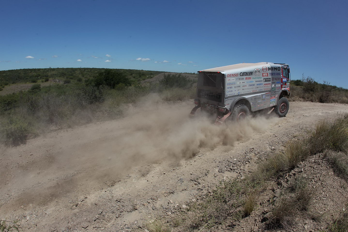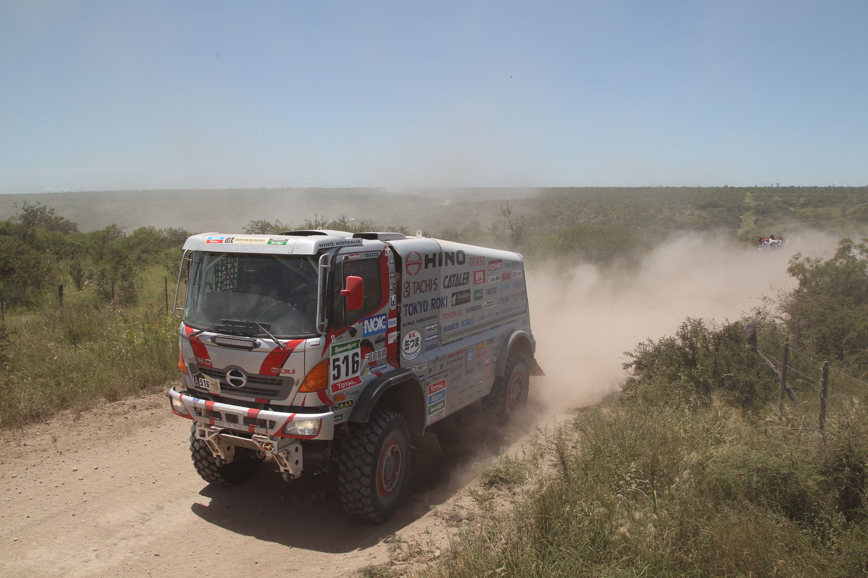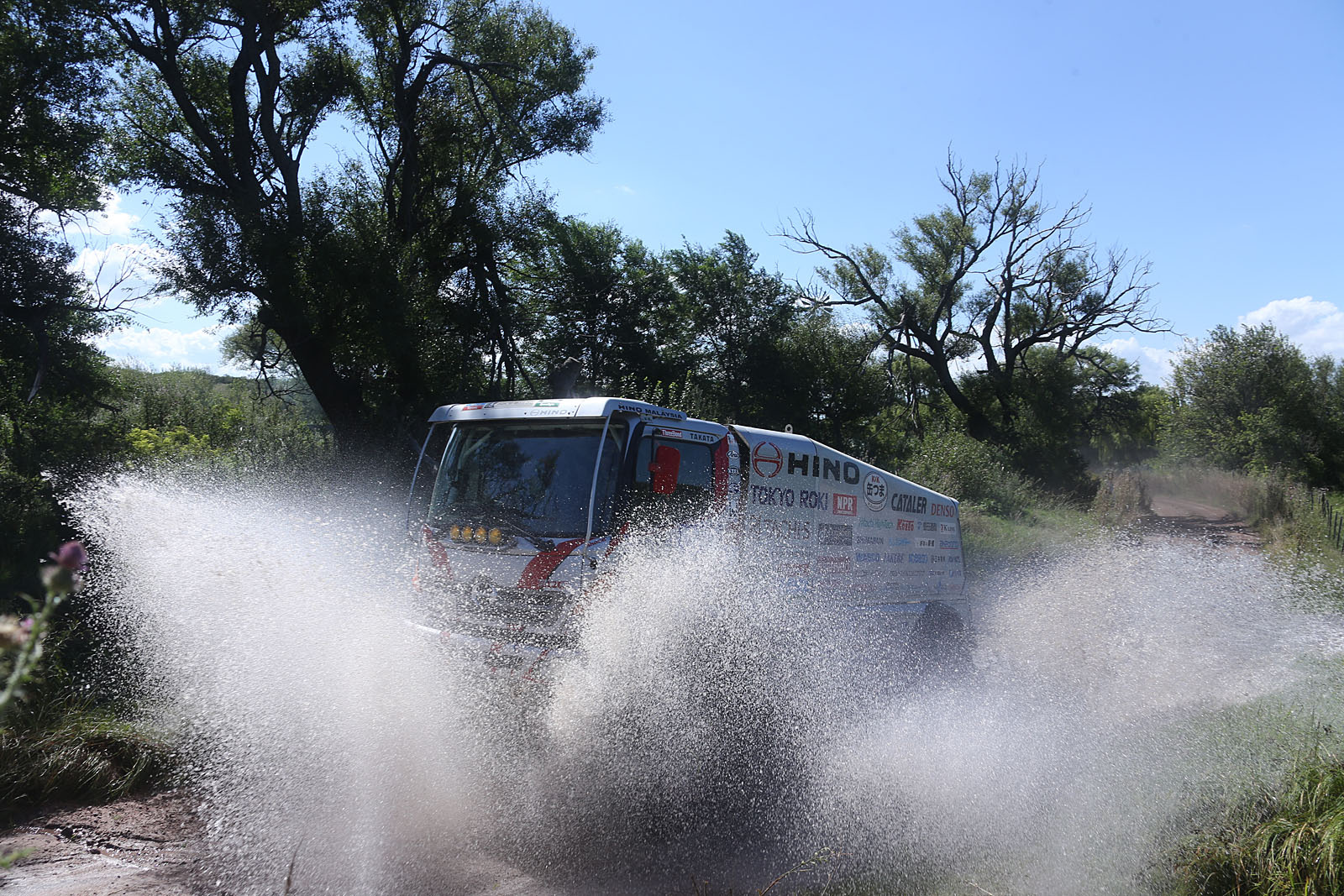 日野チームスガワラの2台の日野レンジャーはこの区間を慎重かつ果敢に走破。
