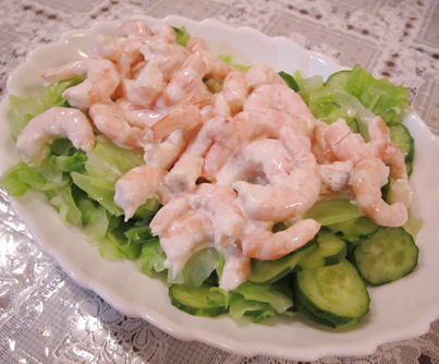 エビのサラダ・ココナッツオーロラソース