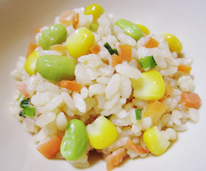 枝豆のカラフルチーズピラフ