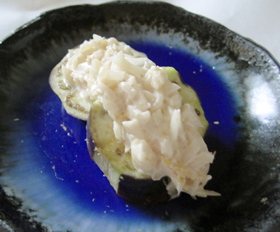 蒸し茄子のささみわさびマヨ