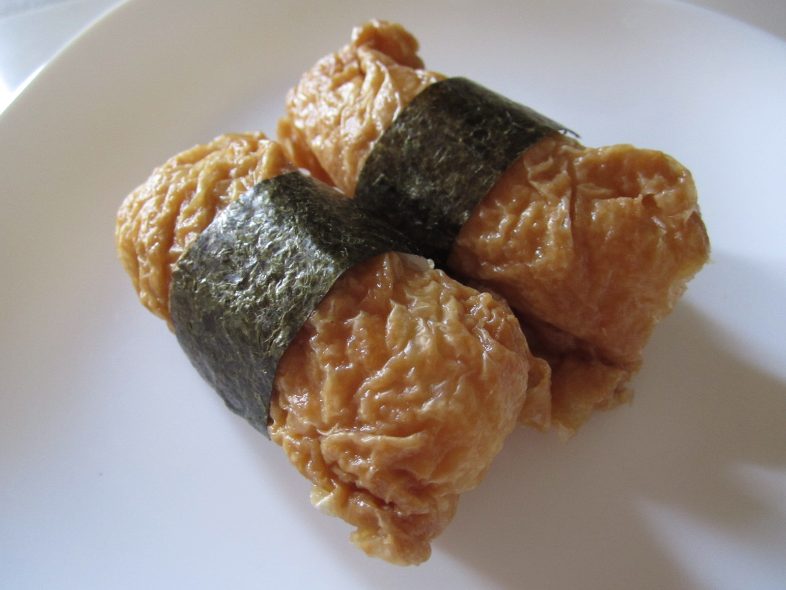 味付けいなりあげを袋状に開き、1を詰め、焼き海苔を巻きつける。