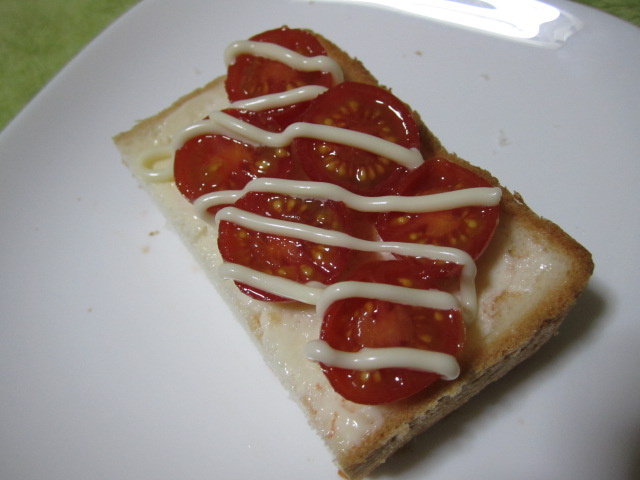 火の通ったプチトマトとアンチョビマヨの旨みがマッチしたトーストです。