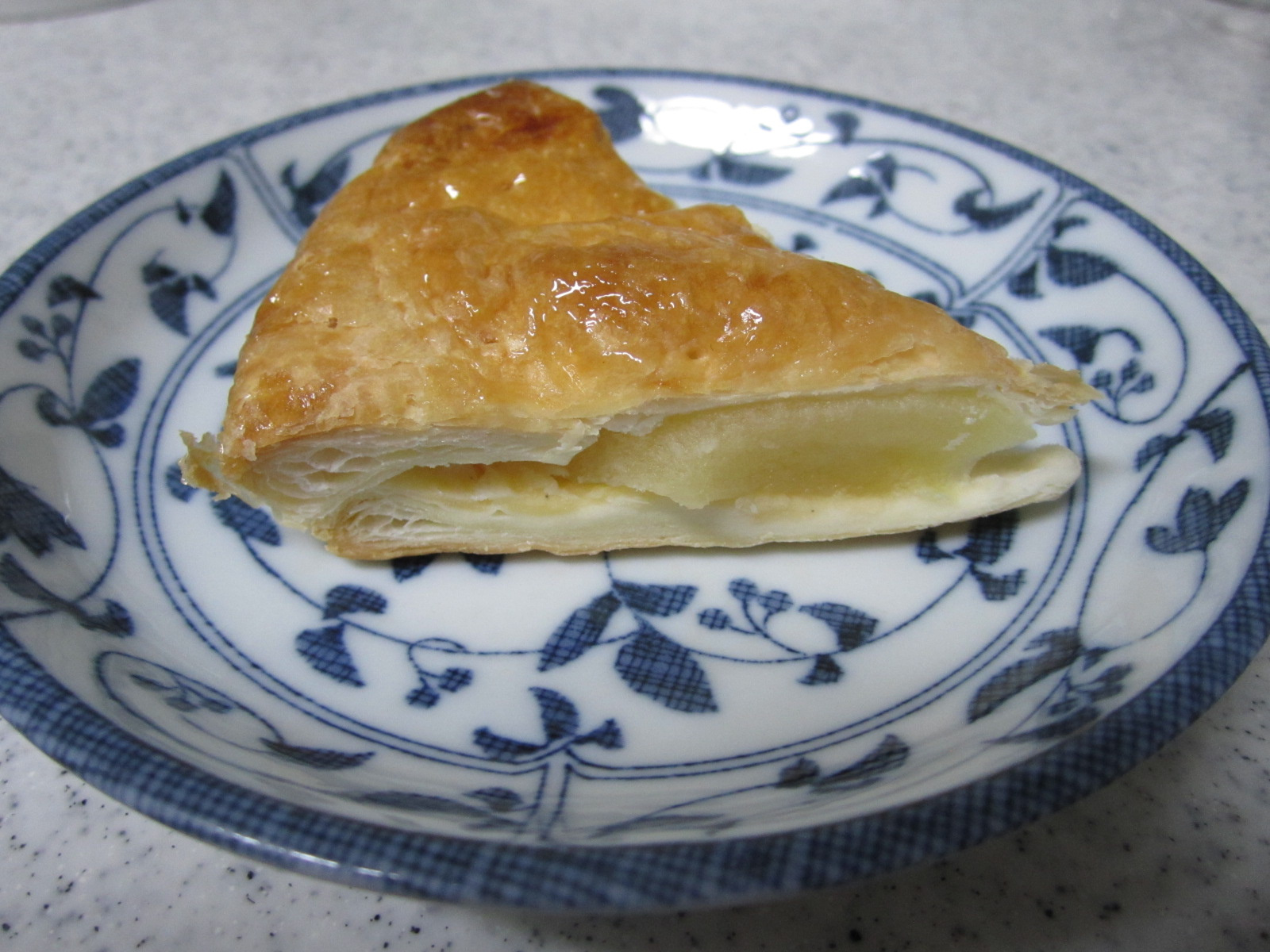 - 解凍したパイシートを伸ばしてパイ皿にのせ、1を平たくなるように乗せ、もう一枚のパイシートをかぶせて表面に溶き卵を塗る。