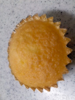 中にジューシーな白桃が入ったマドレーヌです。 豆腐を使用してヘルシーに仕上げました。