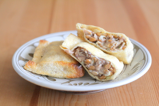 鯖の旨みと風味が納豆にとても合い、美味しい巾着焼きができました。お好みで醤油をかけていただいてください。
