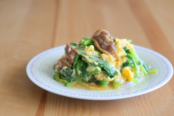 焼鳥の甘辛な味にバターやたまごの優しい味がプラスされ美味しい1品に仕上がりました。 ほうれん草の色合いもよくお弁当のおかずにぴったりです。