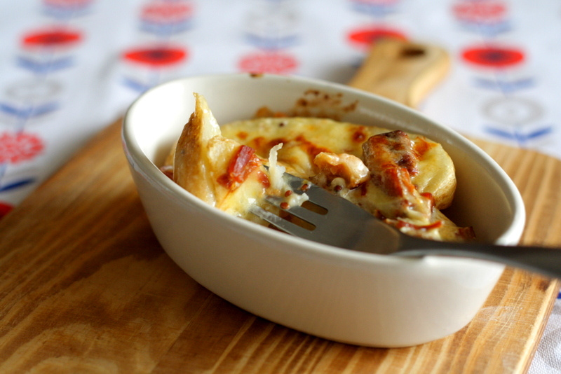 - 1のポテトに2を乗せてトースターでこんがり焼く。