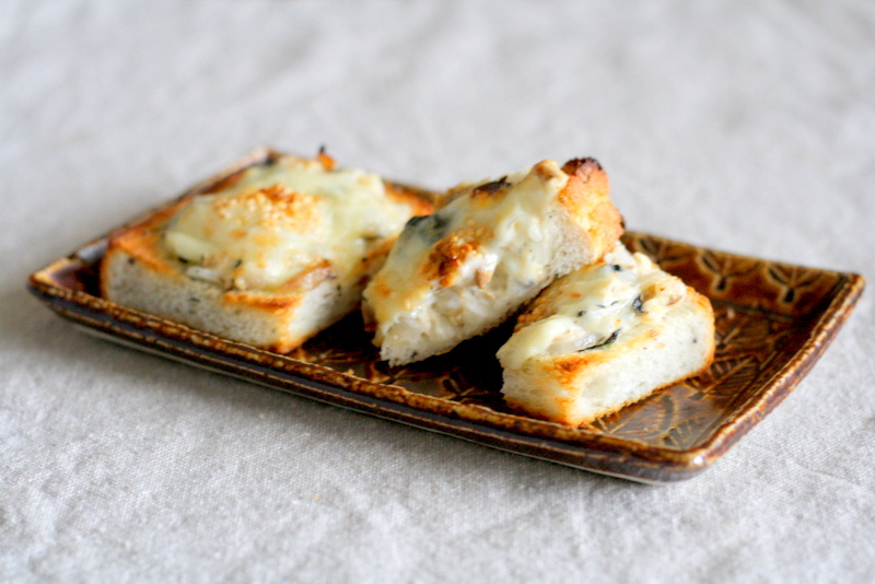 - 食パンに2、チーズをのせて胡麻をふり、トースターでこんがり焼く。
