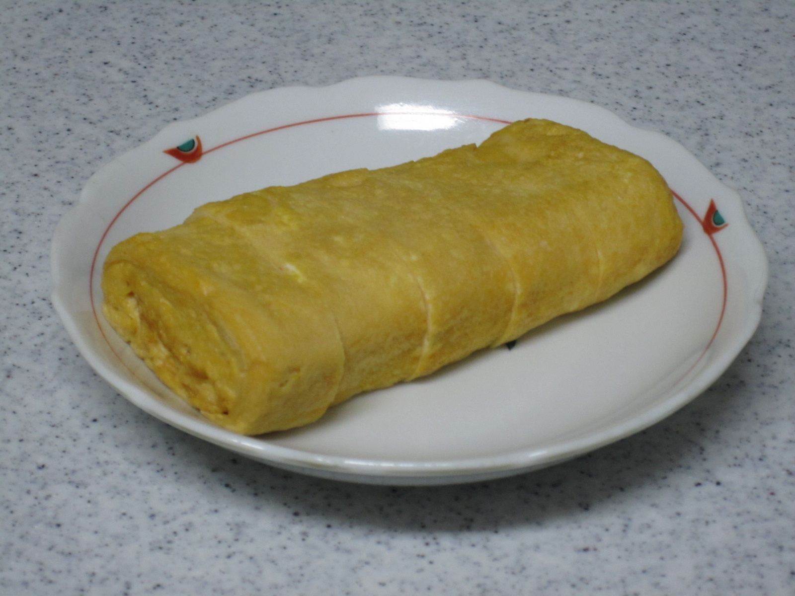 - 2に1を1/3量分流し入れ半熟状になったら巻き、残りの1/3量を流し入れ半熟状になったら巻く
