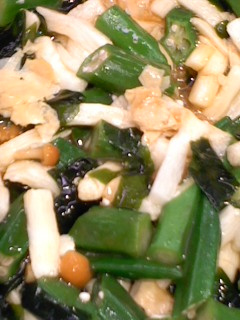 ねばねばつるんとした食感で夏でも食べやすい和え物です。 缶汁少々を加えることでより味にまとまり感が出ます。