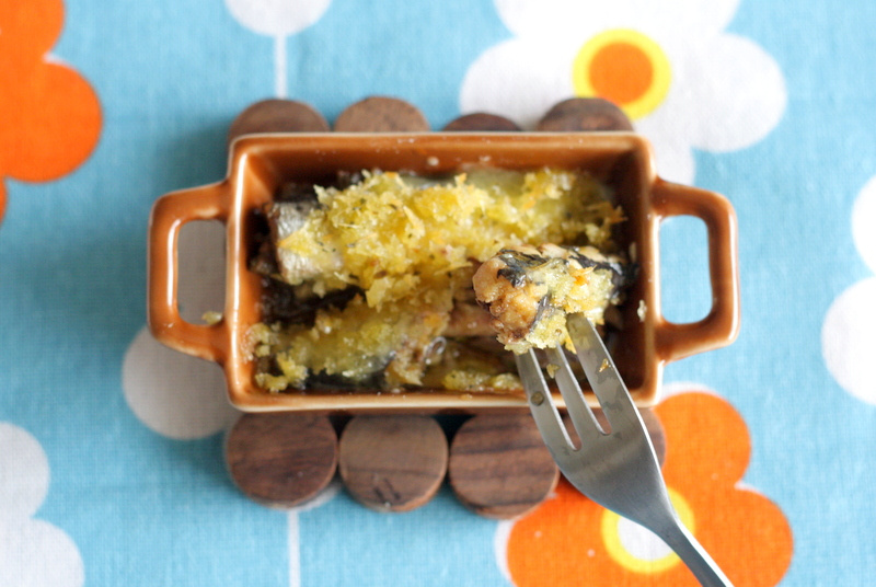 ※今回は小さい耐熱皿に2尾ずつのせて作りました。 オリーブオイルとタイムの香りがよく、オイルサーディンとよく合います。 チーズをのせることでコクが増してさらにおいしくなります。