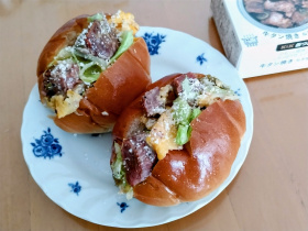 クラッカーに2・適当な大きさにほぐしたオイルサーディンをのせる。