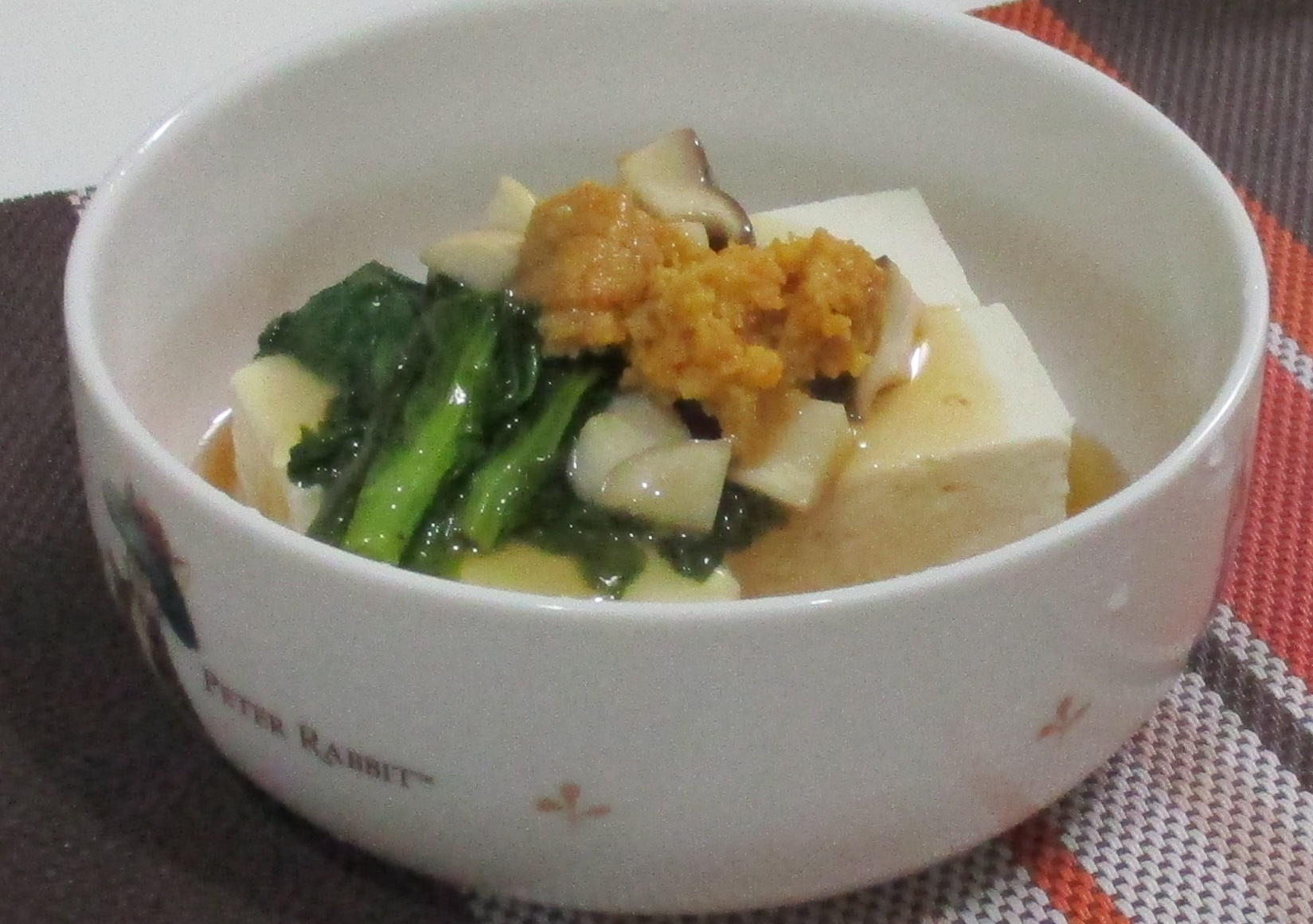 - 木綿豆腐は一口角に切り、塩をふり、ゆでて湯切りをする。