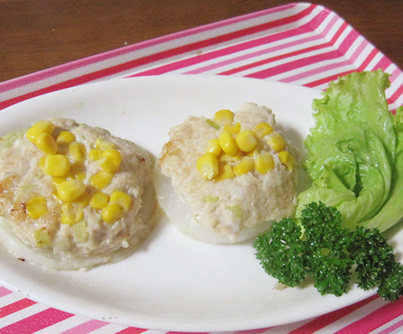 リングオニオン コーン入り挽肉詰め