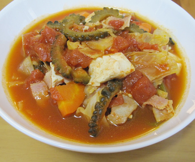 ベーコンとゴーヤ・豆腐のトマト煮込み