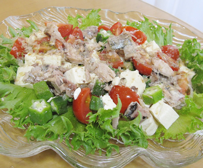 さんまとおくら・豆腐のおかかぽん酢サラダ