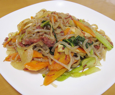 糸こんにゃくとコンビーフのチャプチェ風炒…