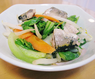 さんまとチンゲン菜・もやしのぽん酢炒め
