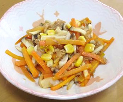 ツナとにんじんのカレー麺つゆ炒め