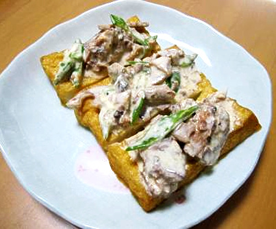 厚揚げのさんまとれんこんのマヨネーズがけ