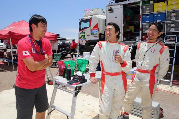 杉浦博之/SS残り100㎞で右前輪がスローパンクになりましたがタイヤ交換をせず、CTIS(タイヤ空気圧調整装置)を使ってエアを補充しながら走り切りました。砂丘ではほかの車輪の空気は抜いたりと複雑でしたが、結果的にロスタイムなくゴール出来て成功でした。