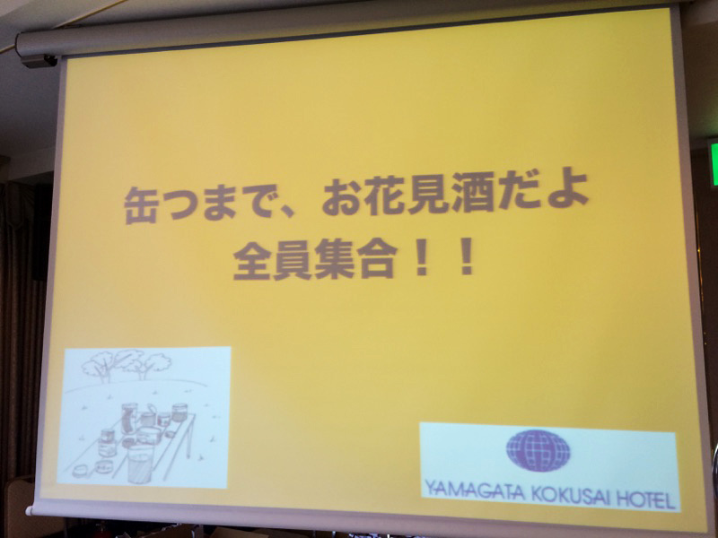 2015年4月4日に、山形国際ホテルにおいて、 『缶つまで、お花見酒だよ全員集合!』イベントを開催いたしました。 来場者数は90名を数え 盛況なイベントとなりました。