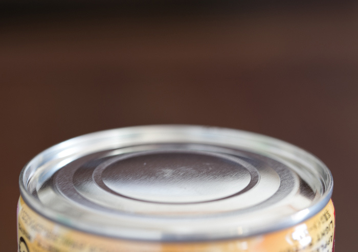 ではもっと突っ込んで、缶詰は賞味期限を過ぎたらどうなるのか。僕の体験では、賞味期限を約10年過ぎたカニ缶は問題なかった。やや金属臭が強まったかなというくらいで、色合いも鮮やかだったし、味も美味しかった。賞味期限を21年過ぎたパテ缶も、問題なかった。缶に密着してなかった部分の肉が色褪せたようになっていたが、それだけである。不味かったのは賞味期限を2年過ぎたりんご缶だ。缶が膨らんでいたのだ(画像参照)。しかし腐敗して膨らんだのではなく、りんごの糖分とアミノ酸が化学変化を起こし、二酸化炭素を発生させたという事例であります。開けるときにシロップが飛び散って大変だし、食べてもりんごの味がすっかり抜けてしまい、まったく美味しくなかった。結論を申せば、賞味期限内に食べた方が美味しいよ、ということであります。