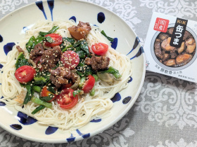 めちゃウマ!牛タンと夏野菜のオイルひやむぎ
