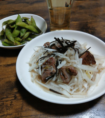日向夏牛たんネギ塩だれ胡瓜レーズンのシナモン和え