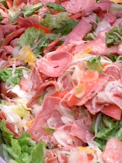 - ルッコラは適当な大きさに切り、玉ねぎは薄切りにし、パプリカは縦に薄切りにし、洋梨はパプリカと同じくらいの大きさで切る。