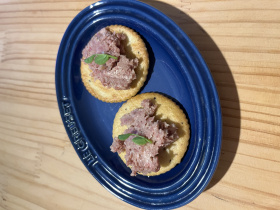 コンビーフマヨのペッパーリッツのせ