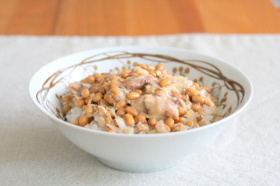 さばだし煮でつゆだく納豆丼