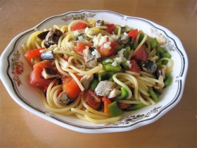 さんま蒲焼のトマトカップ焼き