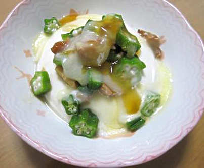 あったか豆腐のとろーりチーズと焼鳥のせ