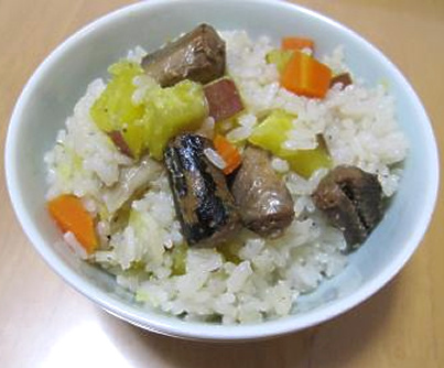 柚子胡椒さんまとさつま芋の炊き込みご飯