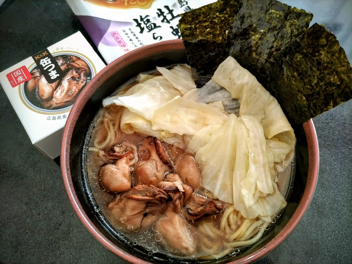 牡蠣づくしのあったか塩ラーメンです。牡蠣のオイルをゆでたキャベツで和えてからのせるとさらに旨みたっぷりのラーメンになるのでおすすめです。