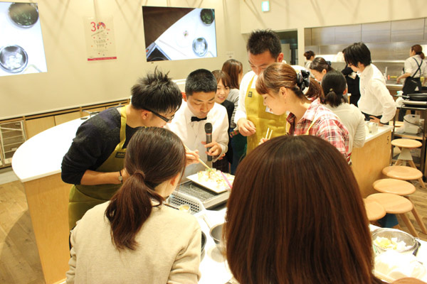 六本木東京ミッドタウンのABCクッキングスタジオにて、缶つまの巨匠間口氏が合コンに使える6種のレシピを伝授。