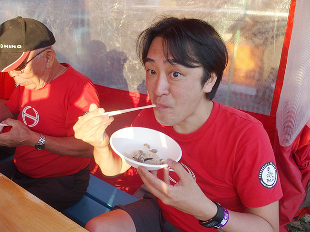 「前半戦は本当に疲れた。炊き込みご飯と濃厚な缶つまが後半戦のエネルギーになります」
