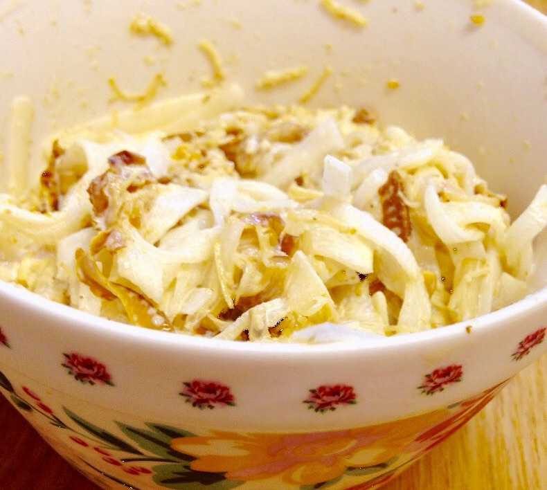 大根はスライサーで薄くスライスし、好みの太さで細長く切る