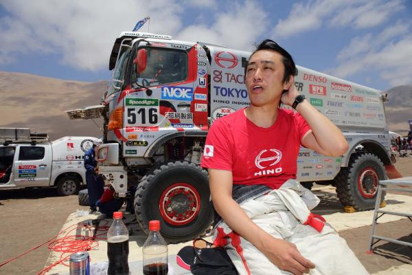杉浦博之/SS残り100㎞で右前輪がスローパンクになりましたがタイヤ交換をせず、CTIS(タイヤ空気圧調整装置)を使ってエアを補充しながら走り切りました。砂丘ではほかの車輪の空気は抜いたりと複雑でしたが、結果的にロスタイムなくゴール出来て成功でした。