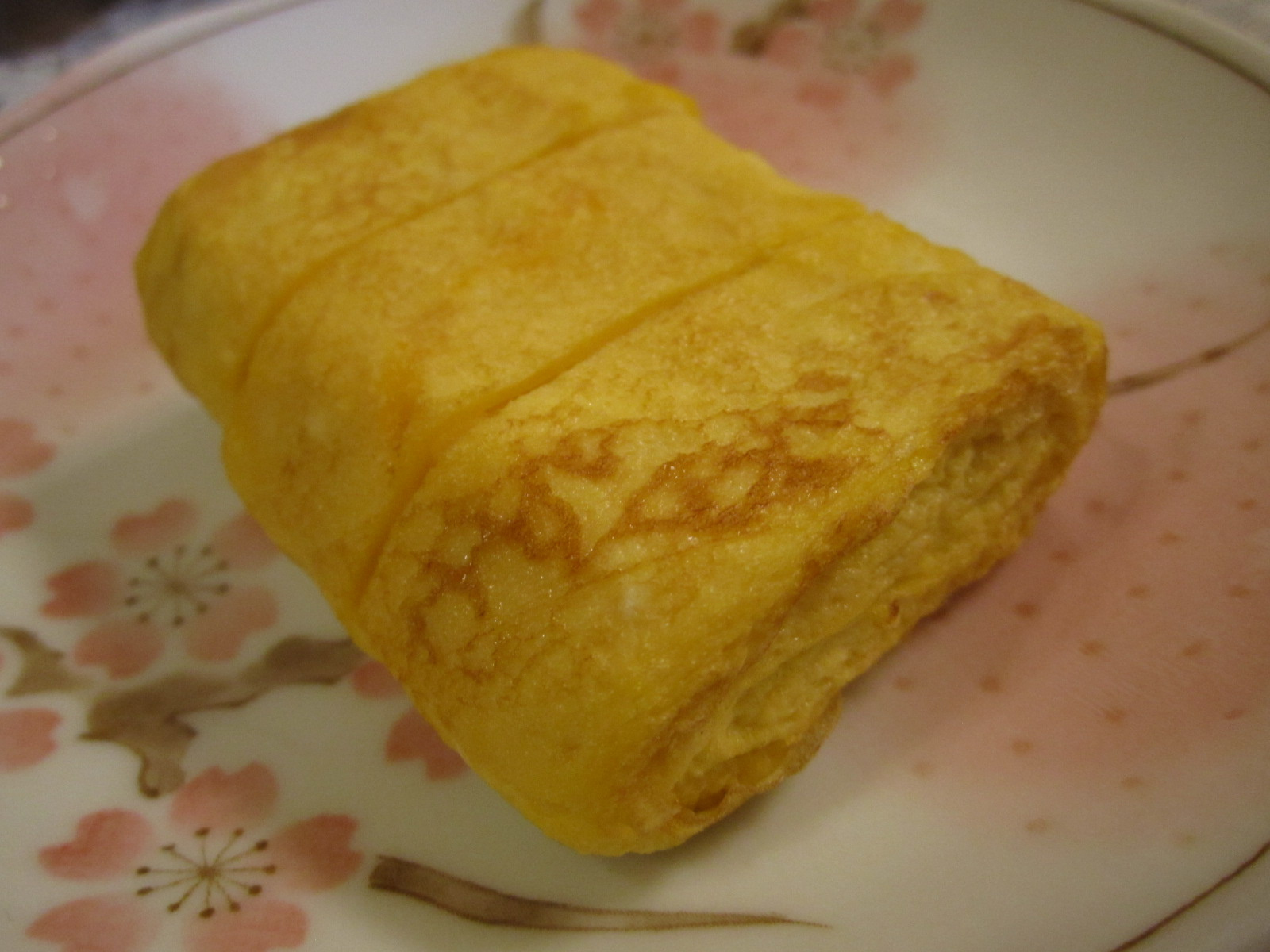 - 2に1を1/3量分流し入れ半熟状になったら巻き、残りの1/3量を流し入れ半熟状になったら巻く。